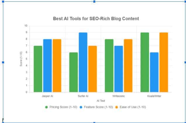 Also, pricing matters when picking a tool. Jasper starts at $49 monthly. Writesonic offers plans from $20. KoalaWriter is budget-friendly at $9. Most tools have free trials.
